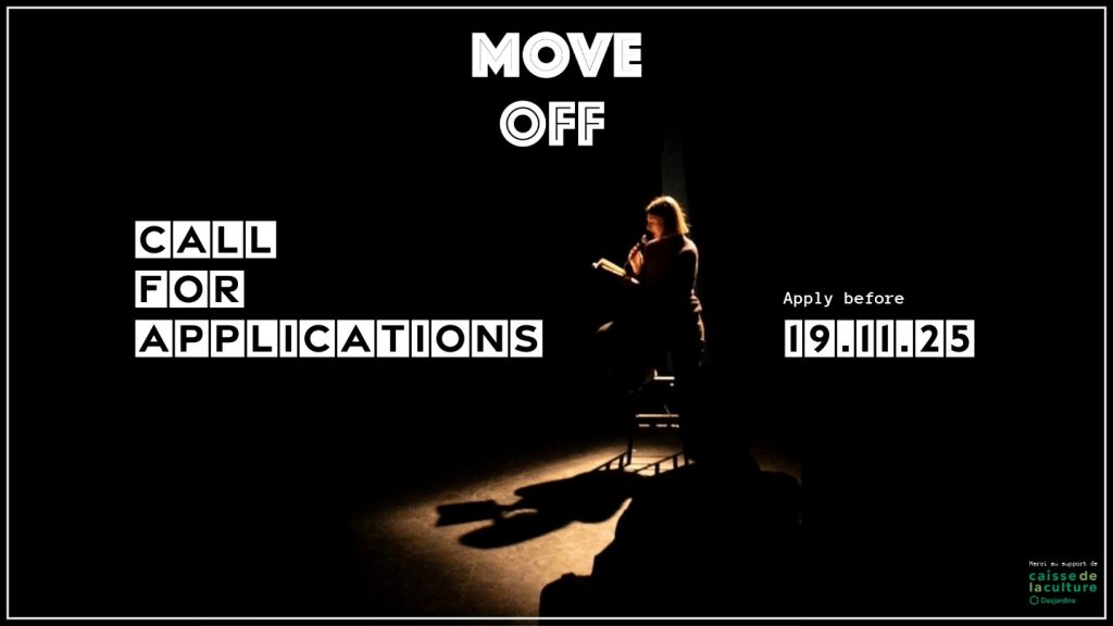 Move OFF is back… Still on the sidelines! We are looking for applications to select five artists who will present a five-minute excerpt, pitch, or presentation of their projects. Move OFF is a unique event that aims to provide a space for artists working in the field of dance and performance to meet and engage […]